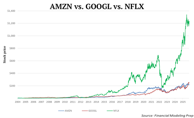 But Cisco didn’t become the most important internet company. The real wealth was created by the apps that came later—by companies like Google (GOOGL), Amazon (AMZN), and Netflix (NFLX).