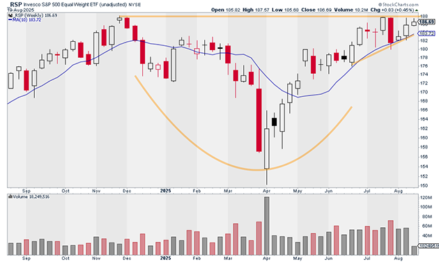 The Invesco S&P 500 Equal Weight ETF (RSP)—a fund that equally tracks the performance of every stock in the S&P 500—climbed 0.5% yesterday.