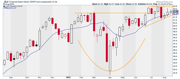 And like RSP, XLF also appears to be on the verge of a breakout: