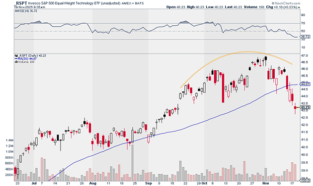 Take a look at this chart. It shows the performance of the S&P 500 Equal Weight Technology ETF (RSPT).
