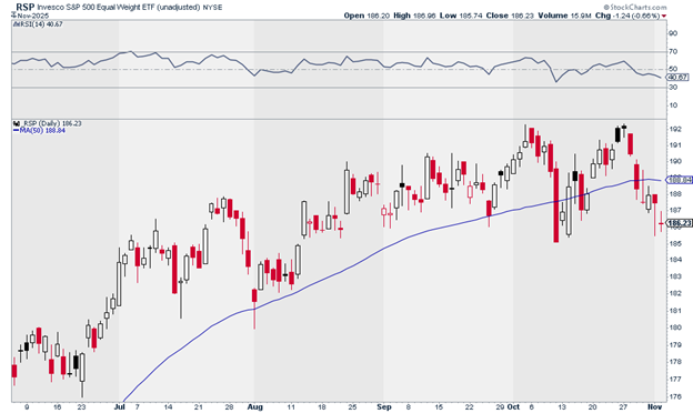 Bulls want to see RSP reclaim its 50-day moving average sooner rather than later.