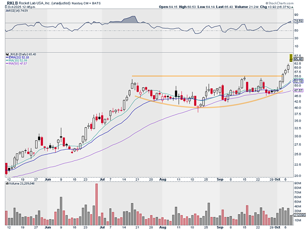 Rocket Lab (RKLB), a space stock I recommended in Express Trader on September 23, has soared 28% over the past week: