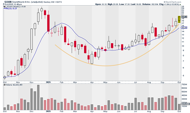 We also recently picked up shares in SoundHound AI (SOUN), a leader in the voice AI space. It’s rallied 19% over the past five days:
