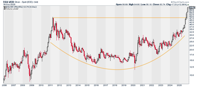 If you’re wondering why this is happening, it’s quite simple. Silver just broke out of a huge base.